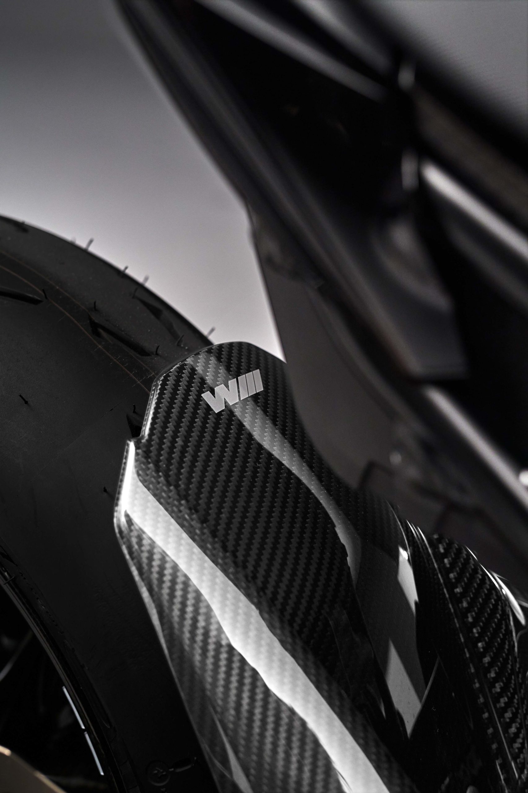 First off, you will see the prominent carbon fiber winglets attached to the front of the fairing, which is very en vogue right now, and thus obligatory. They provide 36 lbs (16.2 kg) of downforce at 187 km/h.