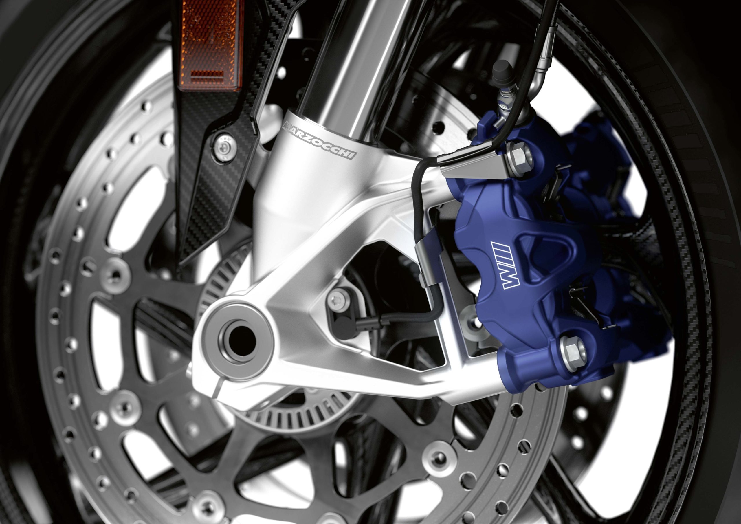 Perhaps the most underrated aspect of the BMW M1000RR is the fact that the optional carbon fiber wheels for the S1000RR come as standard on the M1000RR, which in addition to the other carbon fiber additions, help bring the bike’s weight down to 423 lbs (192 kg) at the curb.