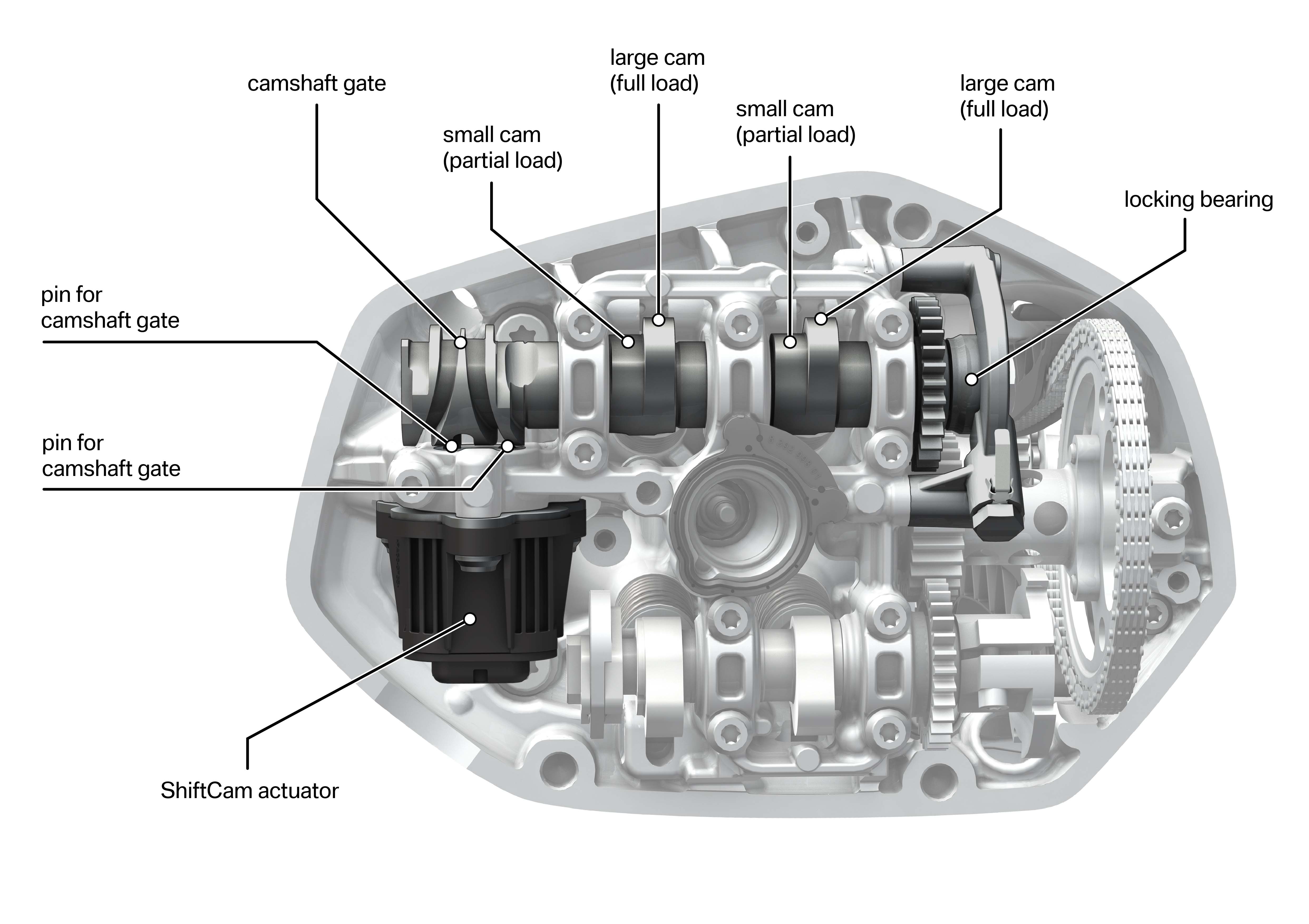 Always one to re-brand the obvious, the BMW ShiftCam technology is really just a variable valve timing system for the intake valves on the R-series engines. As such, it provides two possible cam lobes for each valve, and the “ShiftCam” camshaft shifts position in the cylinder head to engage one of the two lobes, depending on throttle inputs. Hence the name, ShiftCam.