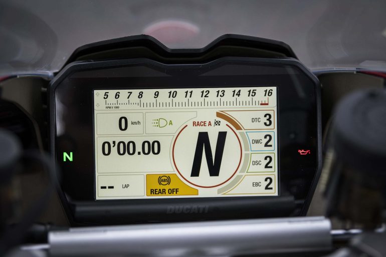 Speed, lap times, ABS status etc are relegated to the left-hand side of the dash, and while they are big enough to discern while riding the bike, they take more time to process, as they should be.
