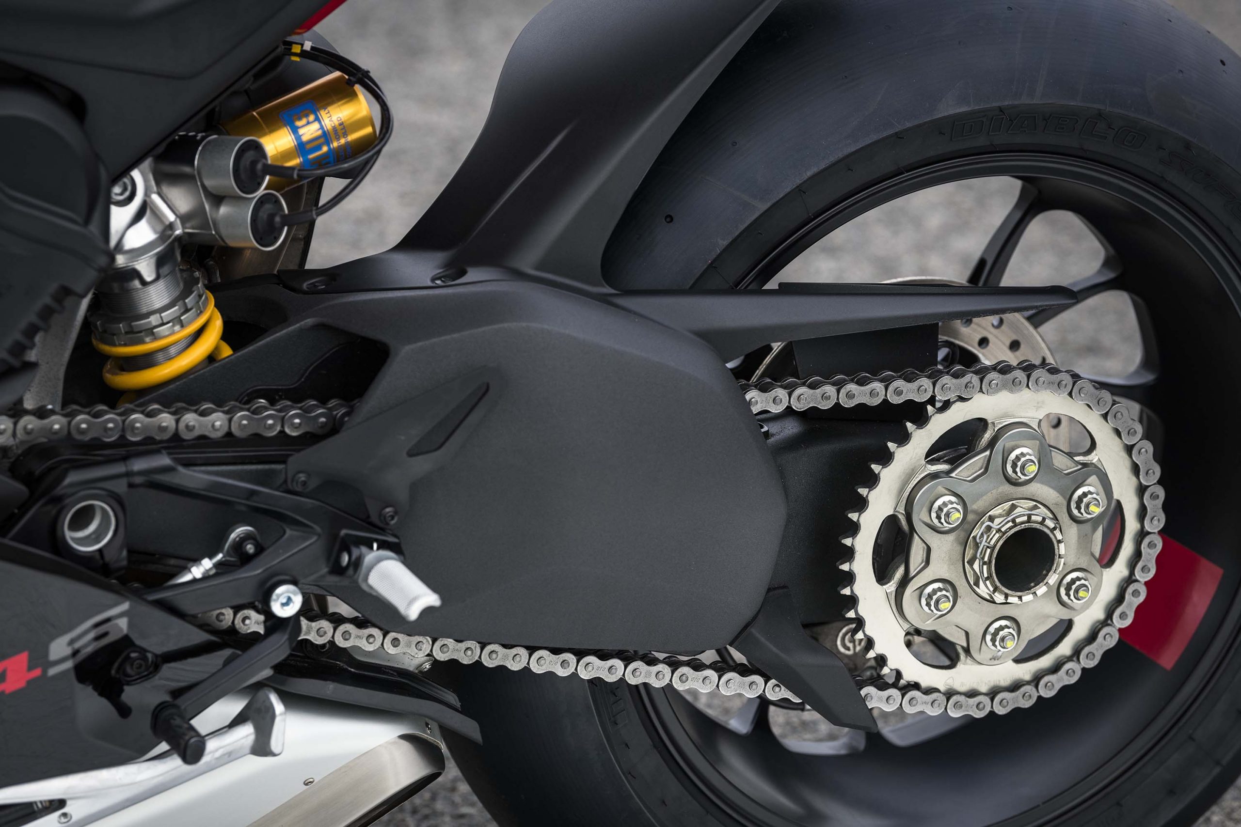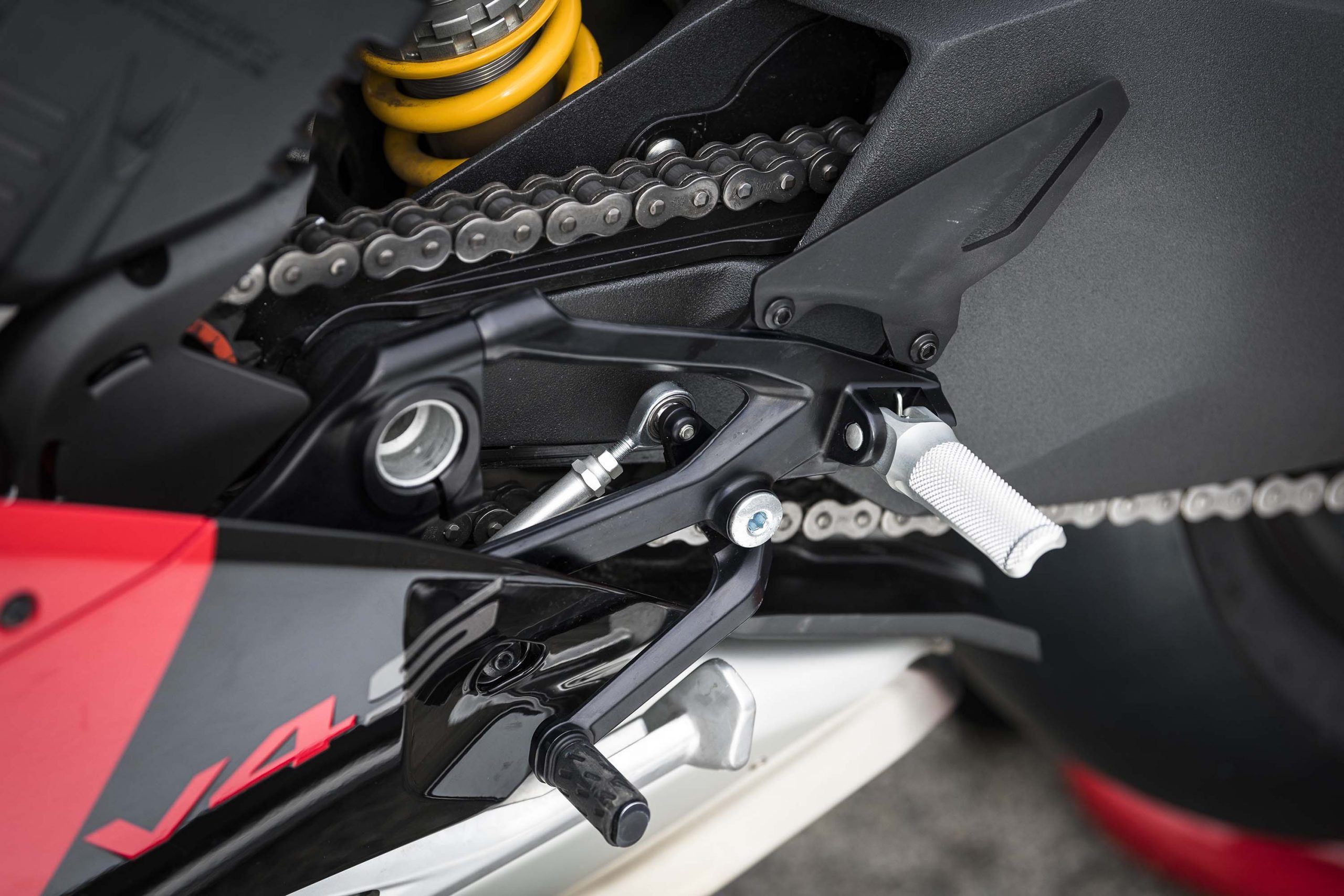 The swingarm pivot has been raised 4mm, for more anti-squat on the gas, which helps the Panigale V4 stay on-line when accelerating out of a corner.