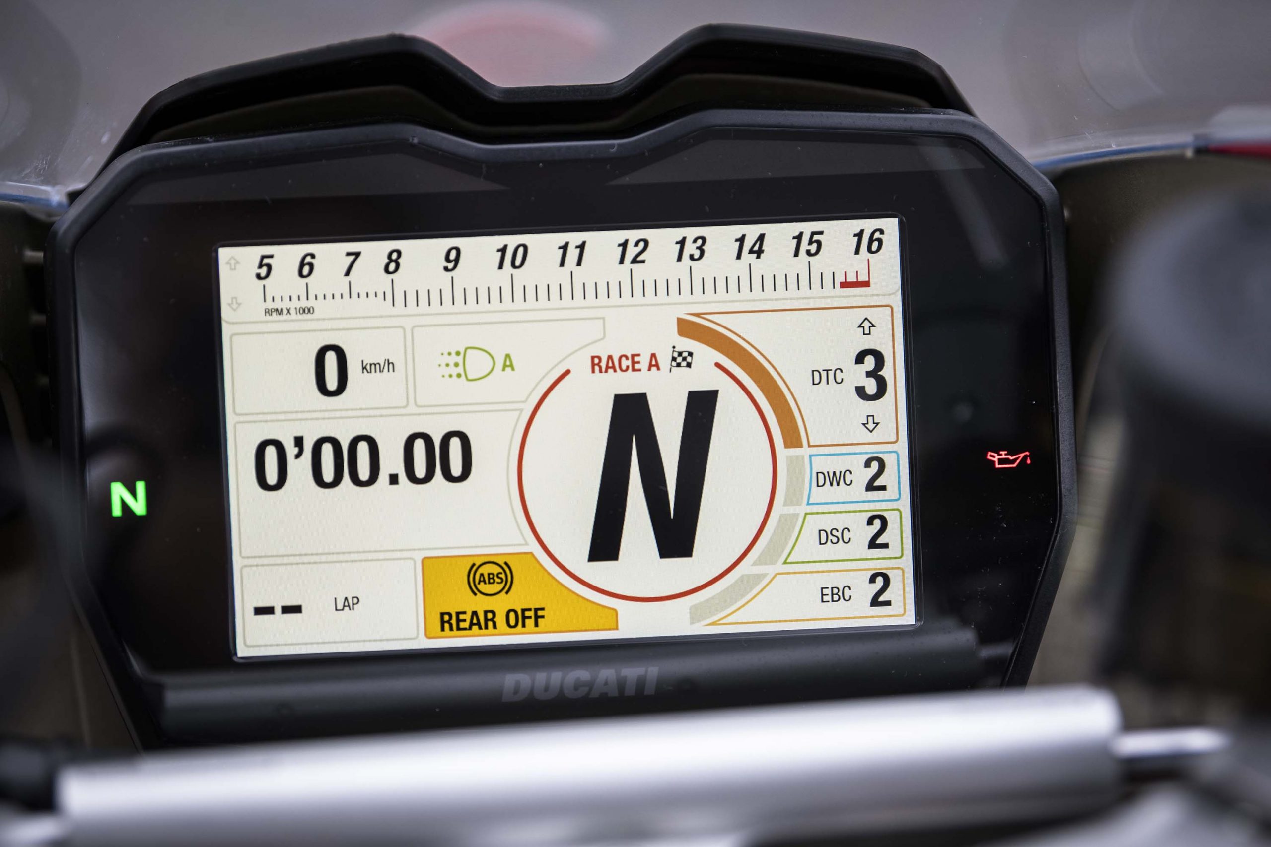 Speed, lap times, ABS status etc are relegated to the left-hand side of the dash, and while they are big enough to discern while riding the bike, they take more time to process, as they should be.