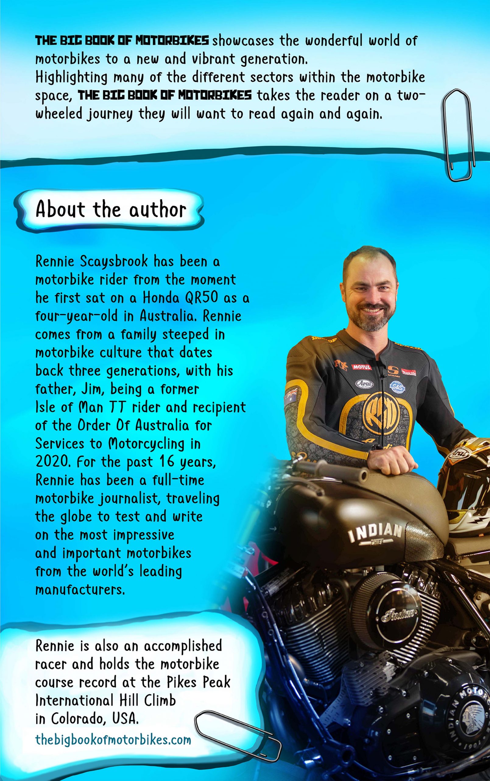I am not big on hocking holiday gift ideas as much as other publications seem to be (they gotta earn that affiliate money, I suppose), but I will give a shout out to my fellow moto-journalist and Pikes Peak record-holder Rennie Scaysbrook, who just wrote his first book: The Big Book of Motorbikes.